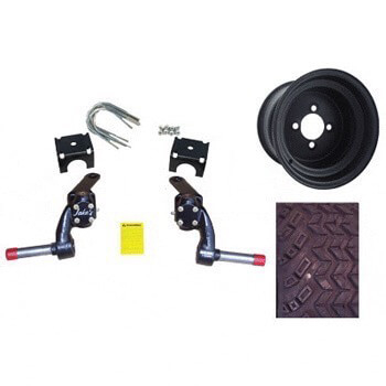 Package includes: four 10" Sahara Classic Desert Tires mounted on 10X8 Black steel wheels, with a 3" Jake's Spindle lift kit