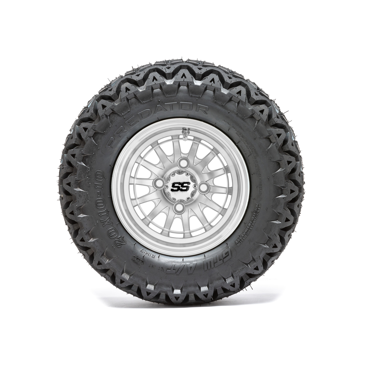 GTW Medusa Silver and Machined Wheels with 20in Predator A-T Tires - 10 Inch