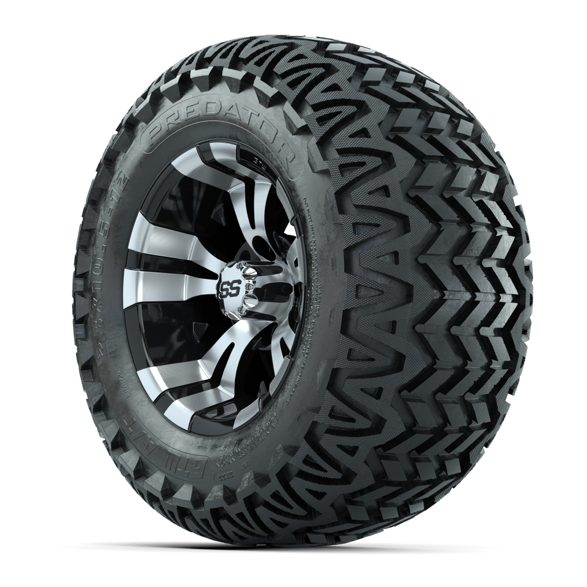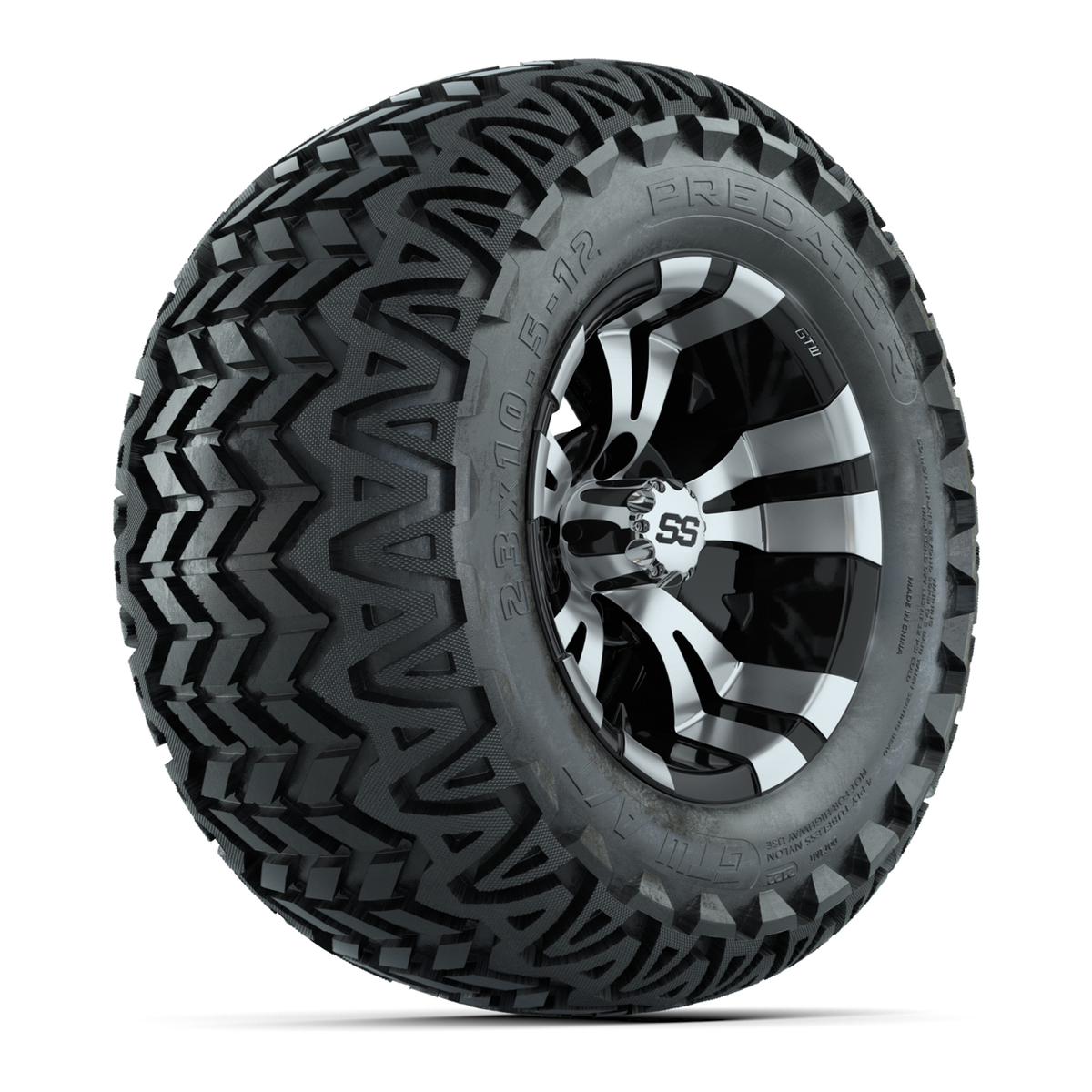 12” GTW Vampire Black and Machined Wheels with 23” Predator A/T Tires – Set of 4