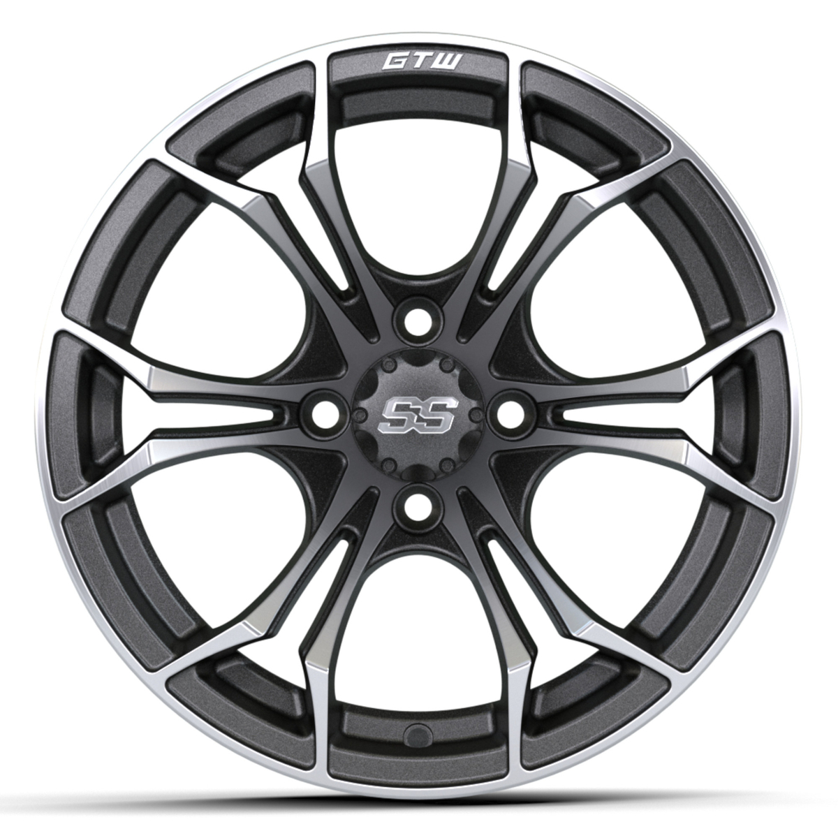 The latest Spyder wheel in the GTW® line can be clearly distinguished from the many other golf car wheels on the market. The Spyder is a GTW® Exclusive design and features a sharp Y-spoke design with red, blue or machined accents, striking sharp angles, deep concave profile, and dynamically-chamfered outer edge.