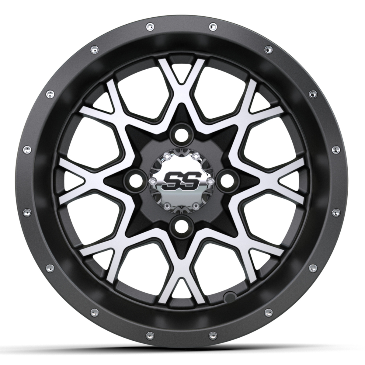 GTW® 12x7 Vortex Wheel now available in a Matte Gray & Machined finish. It is constructed of solid cast aluminum for maximum strength and minimum weight. The GTW® Vortex wheel offers an exclusive GTW® Mesh-Spoke design, deep rim lip, and two-piece look chrome studs. The Vortex pairs great with our premium line of tires and accessories