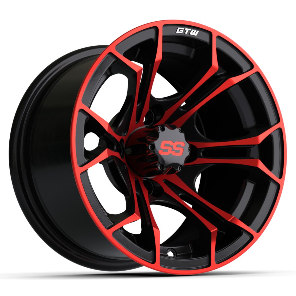 The latest Spyder wheel in the GTW® line can be clearly distinguished from the many other golf car wheels on the market. The Spyder is a GTW® Exclusive design and features a sharp Y-spoke design with red, blue or machined accents, striking sharp angles, deep concave profile, and dynamically-chamfered outer edge.